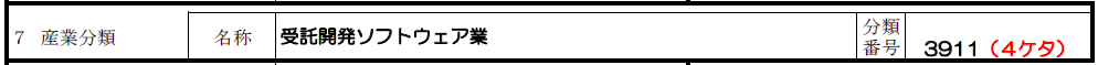 一方、見本のように本業(例:受託開発ソフトウェア業)があり、その一環として派遣(例:ソフトウェア開発者の派遣)も行っている場合は、メインとなる事業の産業分類を書くことになります。