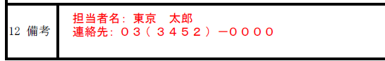 12:備考欄(労働局問い合わせ用の情報)