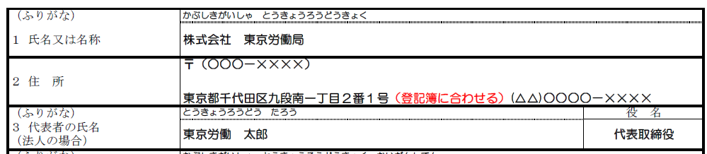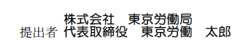 ここには「会社名」「代表取締役の氏名」を記載します。