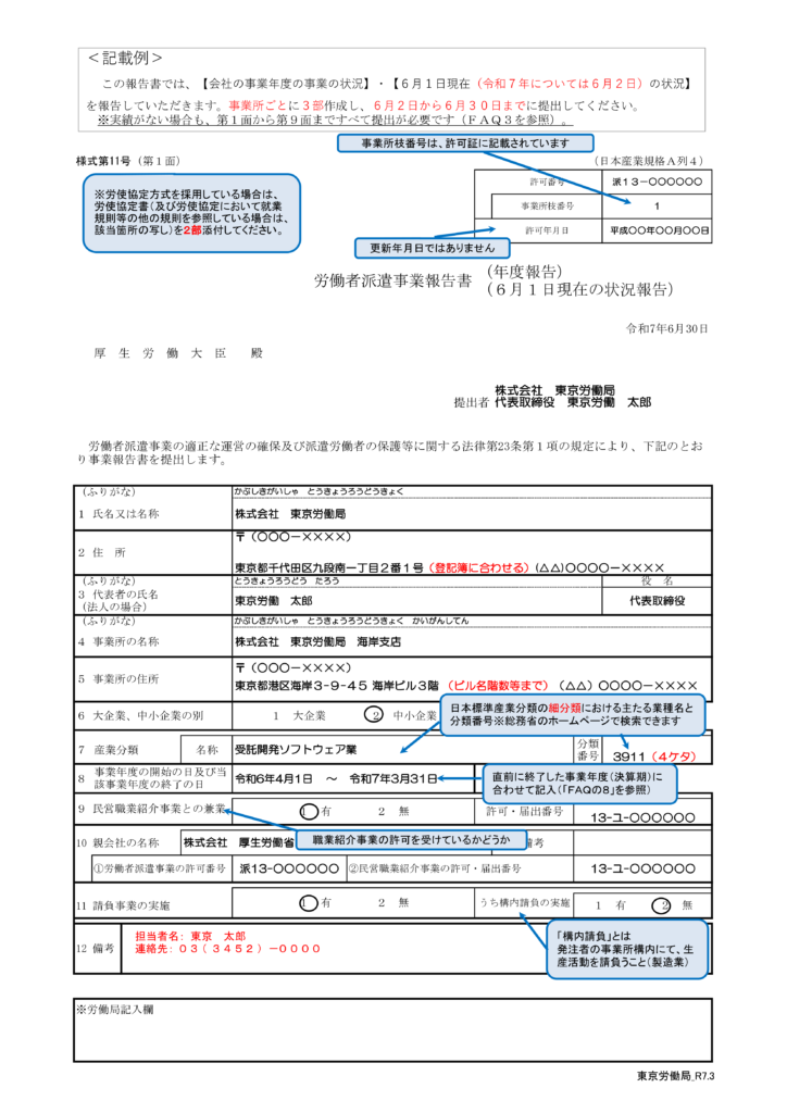 詳細は、6月のコラムでも触れたとおり、労働局から送られてくる派遣報告書の提出案内に従いましょう。