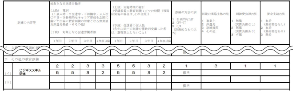 報告対象期間中の入社1年目~3年目の派遣労働者に対しては、必ず教育訓練を実施し、報告書に記載する必要があります。